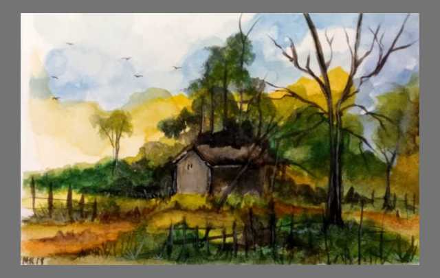 An early attempt to discover how to work with water colours.